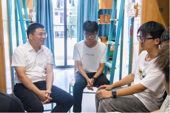 “同学们是哪里人?”“来到学校还适应吗?”“饮食是否习惯?”在交流中,张书记耐心询问了同学们近期的学习状态和生活情况,他仔细询问新生们的校园生活体验、住宿环境感受,认真倾听大家初入工贸时的初心与需求,并鼓励同学们做好学业规划,学好专业知识,努力成长为有扎实技能、有理想抱负的工贸优秀学子。期间,张书记听取了同学们关于食堂饭菜、运动场所和宿舍用电等方面意见和建议,现场协调相关部门尽快改进,确保同学们的学习和生活环境更加优化,真正实现学有所得、心有所安。
