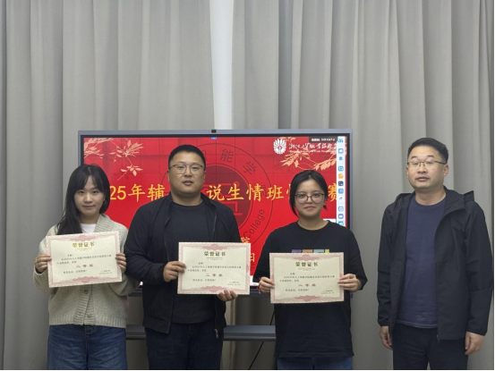 经过激烈的角逐,最终评选出一等奖2名、二等奖3名、三等奖4名。学院领导分别为获奖辅导员颁发了荣誉证书,并合影留念。