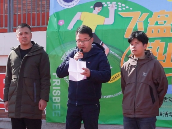 开幕式第二项议程,人工智能学院党总支副书记洪长存老师为本次比赛致辞。他表示,飞盘运动承载着青春的热血与协作的力量,不仅是考验速度与技巧的竞技项目,更是凝聚班级情谊、展现学子风采的重要平台。从首届的初试啼声到如今的如火如荼,飞盘赛已成为学院体育文化中一道亮丽的风景线。希望同学们能够放下平日的课业压力,挣脱屏幕与键盘的束缚,在运动场上释放蓬勃激情。