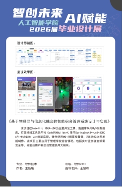 2026年1月7日,人工智能学院软件专业毕业设计展于万洋产业园圆满举办。本次展会以“智创未来,AI赋能”为核心主题,深入践行学校“产教融合、服务地方”的办学理念,以毕业设计成果集中展示为重要载体,全方位、立体化呈现软件技术专业在人才培养、技术创新与社会服务方面的扎实成效与显著质量。