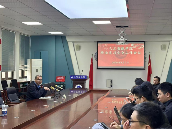 为全面部署2026届毕业实习安全管理重点工作,压实安全管理责任,确保毕业实习工作平稳有序推进,人工智能学院于2026年4月7日下午在414会议室召开毕业实习安全工作会议。会议由学院副院长钱月钟主持,全体实习指导教师参加会议。