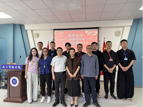 为精准打通人工智能技术与地方实体经济双向对接通道,夯实市域AI产业创新应用底座,全力护航温州人工智能示范应用标杆城市建设,4 月 27 日下午,温州市图灵人工智能高等研究院、温州大学计算机与人工智能学院副院长黄辉带队莅临我院,就“AI翻译官”工作开展专项调研交流。人工智能学院院长赵秀芝、副院长钱月钟及“AI 翻译官”全员参加此次会议。