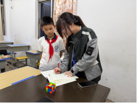 在走访过程中,王安曼老师详细了解了伍郑蓉同学的实习内容与工作表现。该生主要负责课后托管班五、六年级学生的日常管理工作,包括辅导学生完成课后作业、批改作业、答疑解惑,并督促学生掌握“应知应会”知识,如课文背诵等基础学习任务。实习期间,伍郑蓉同学工作认真,态度踏实,能积极与学生沟通,协助中心老师维持良好的教学秩序,得到托管中心一致好评。